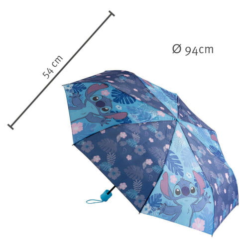 Stitch Parasolka składana [STLO7210] • Parasolka składana z wizerunkiem sympatycznego kosmity.• Długość całkowita parasolki 54 cm• Wymiary parasolki po złożeniu 24 cm x 4 cm x 3 cm• Średnica parasolki 94 cm Kod EAN: 4043946321941Opakowanie zbiorcze: 6 szt.
