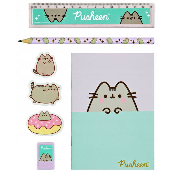 Pusheen zestaw artykułów szkolnych, papierniczych. • Piórnik wykonany z miękkiego, elastycznego PCV z różnymi kotkami Pusheen, Zapinane na suwak• Ołówek – twardość HB• Linijka – długość 15cm• Notesik w linię. Wymiary: 15x10cm• Gumki kształtowe Pusheen – 3szt• Temperówka z pojemniczkiem na ścinki• Do piórnika można z łatwością dołożyć inne przybory• Wymiary piórnika: 17x21cm Kod EAN:…