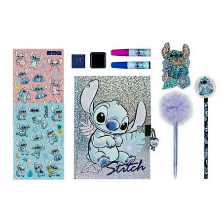 Stitch Pamiętnik zestaw [STLI4470] STITCH sympatyczny kosmita – Pamiętnik zamykany na kłódkę z akcesoriami zapakowany w pudełko prezentowe. • Pamiętnik z małą kłódeczką w brokatowej tonacji.• Ołówek HB.• Długopis z pomponem.• Gumka do ścierania.• 2 flamastry (niebieski i różowy).• Pieczątka i poduszeczka.• Blister z naklejkami Kod EAN: 4043946318934Opakowanie zbiorcze: 6 szt.