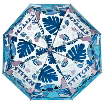Stitch Parasolka [STLO7202] STITCH sympatyczny kosmita – Parasolka przeźroczysta. • Mechanizm rozkładania manualny.• Pręty usztywniające wykonane z elastycznego tworzywa.• Długość parasolki: 66 cm• Średnica rozłożonej parasolki 69 cm Kod EAN: 4043946318187Opakowanie zbiorcze 1 szt.