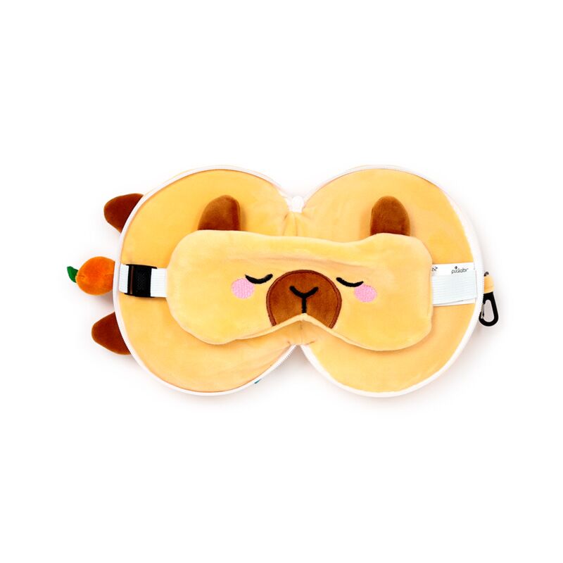 Poduszka podróżna z maseczką – KAPIBARA [CUSH442] • Pluszowa poduszka podróżna i maska na oczy „Adoramals” Kapibara [CUSH442] • Materiał: 95% Poliester / 5% Spandex • Można prać w pralce 30°C • Wymiary: Wysokość 17 cm / Szerokość 15,5 cm / Głębokość 10,5 cm / Otwarty 17×28,5×10,5cm Kod Kreskowy EAN: 5055071515378 Opakowanie zbiorcze: 1 szt.