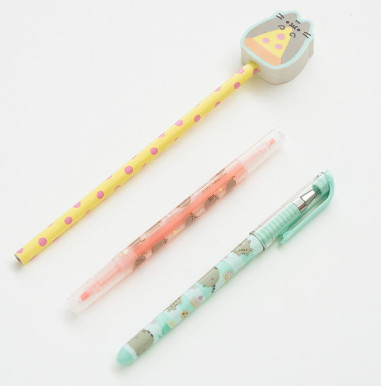 – ołówek z gumką w kształcie kotka Pusheen z pizzą. Gumka zdejmowana