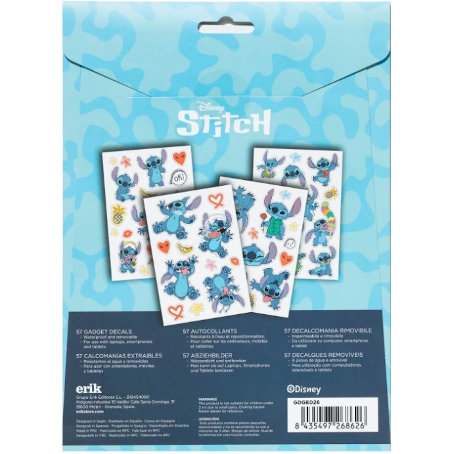 Zestaw naklejek Stitch na laptop, tablet lub telefon. W zestawie znajduje się 5 arkuszy z sympatycznym kosmitą w różnych odsłonach oraz atrybuty.
