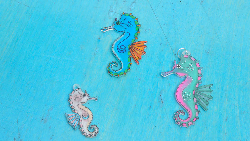 Odrysuj na specjalnej folii szablony dołączone do zestawów, pokoloruj, wytnij je, a na koniec wypiecz przez kilka minut w domowym piekarniku w temp. 160 o C.