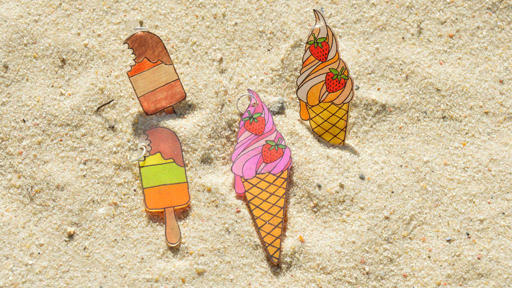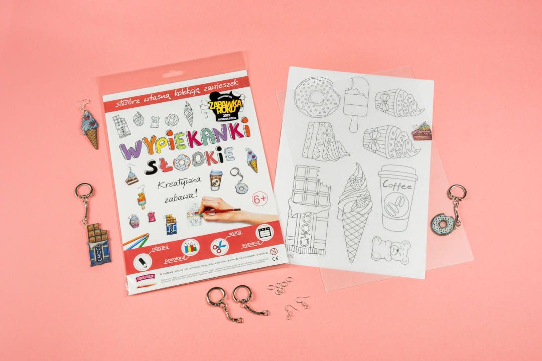 Odrysuj na specjalnej folii szablony dołączone do zestawów, pokoloruj, wytnij je, a na koniec wypiecz przez kilka minut w domowym piekarniku w temp. 160 o C.
