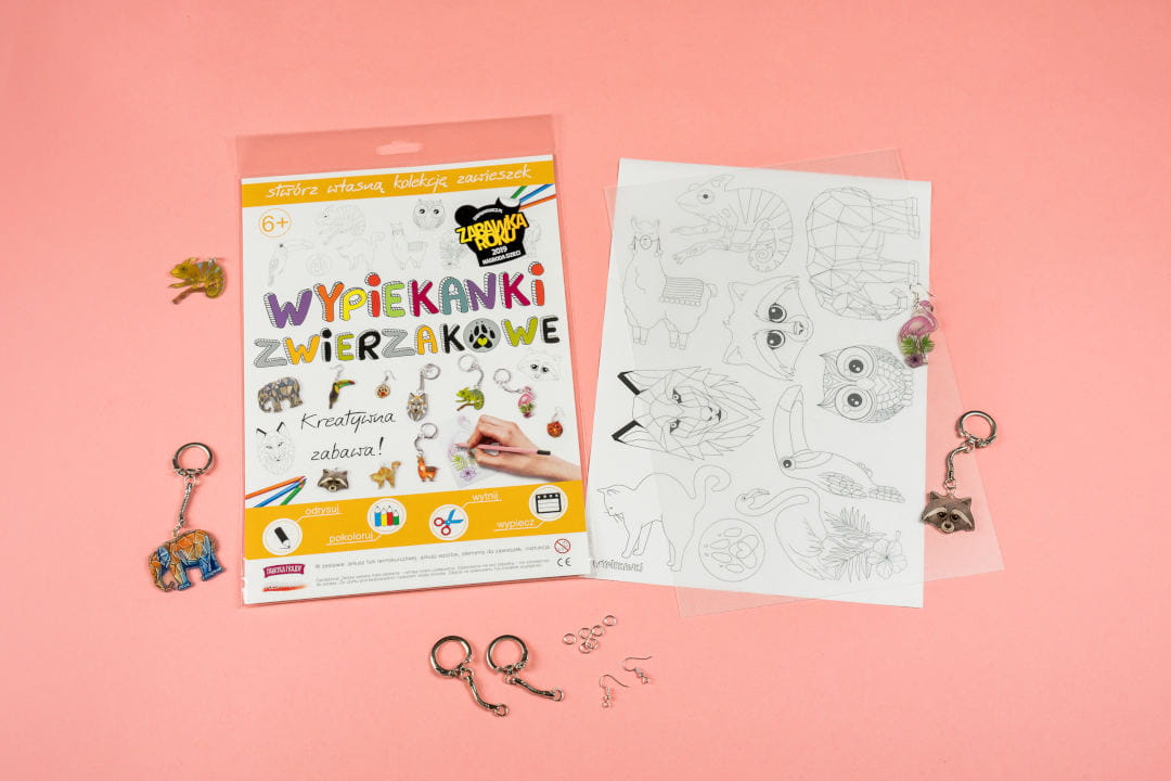 Odrysuj na specjalnej folii szablony dołączone do zestawów, pokoloruj, wytnij je, a na koniec wypiecz przez kilka minut w domowym piekarniku w temp. 160 o C.